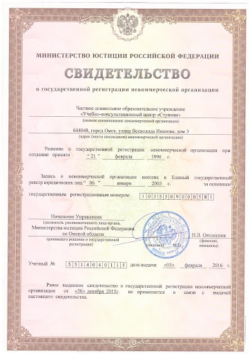 Свидетельство о государственной регистрации некоммерческой организации скачать